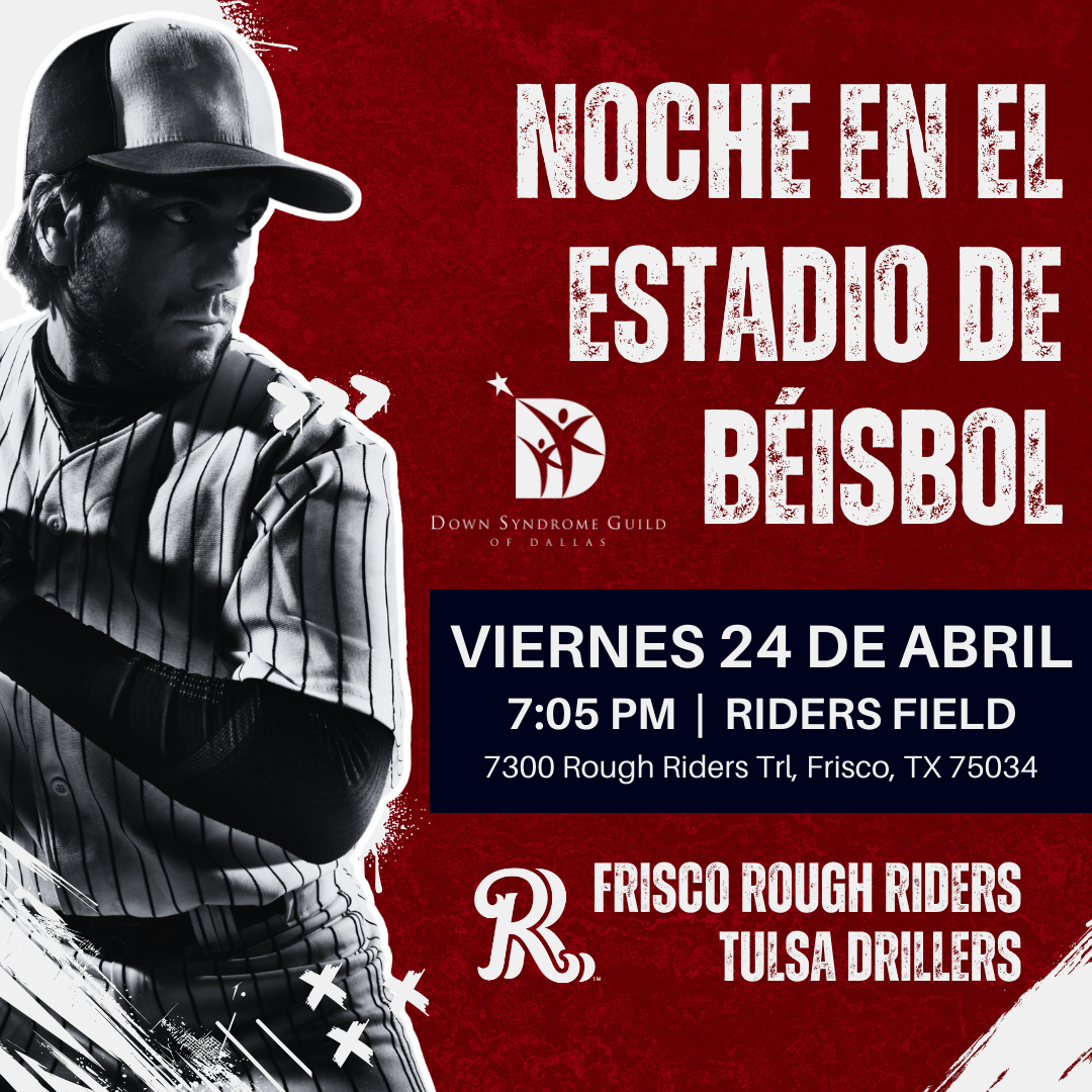 En honor al Dallas Buddy Walk® 2026, este octubre, invitamos a las familias y aficionados del DSG a disfrutar de una noche en el estadio. Las familias podrán echar un vistazo a nuestro Buddy Walk® mientras ven el partido entre los Frisco Rough Riders y los Tulsa Drillers. Representantes del Down Syndrome Guild realizarán el primer lanzamiento ceremonial, y las familias están invitadas a quedarse para el espectáculo de fuegos artificiales posterior al partido.